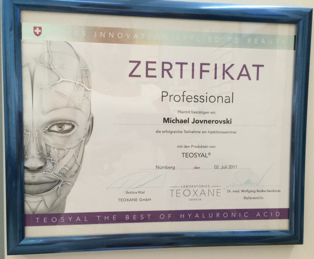 Hier finden sie Bilder von unserem Team und den Zertifikaten und Urkunden von Herr Dr. Jovnerovski